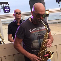 DJ met live Sax Pepperoni tijdens bruiloft bij Beachclub Perry's, Brouwersdam