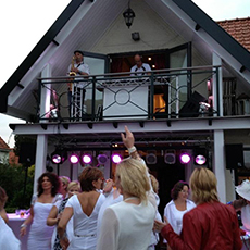 De DJ met Sax Shows zijn in verschillende settings, met bekende of minder bekende deejays en met of zonder professioneel licht en geluid te boeken.